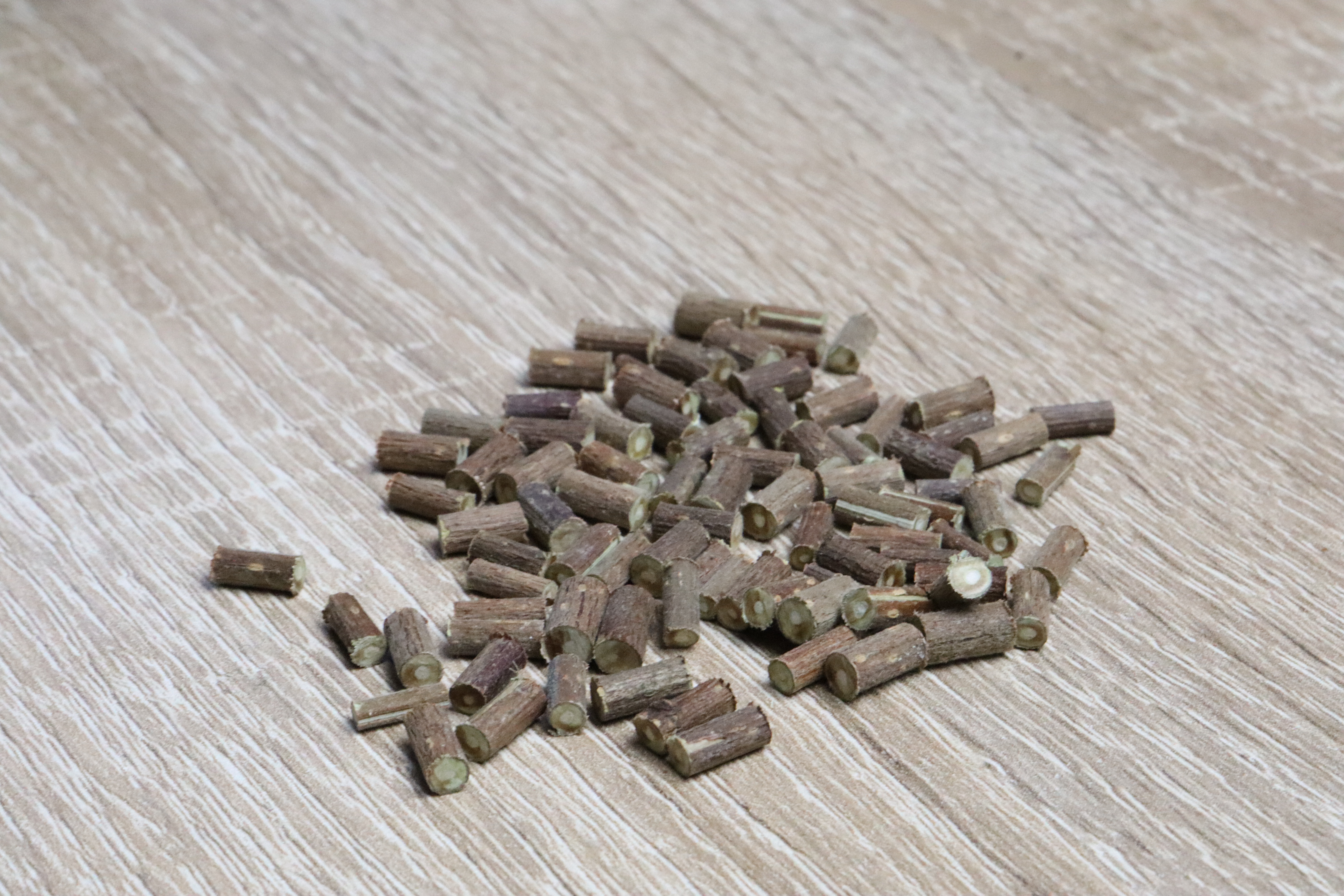 Wenn eure Haselnusszweige gut trocken sind schneidet diese am besten mit einer kleinen Tischkreissäge in 6mm lange Stücke.