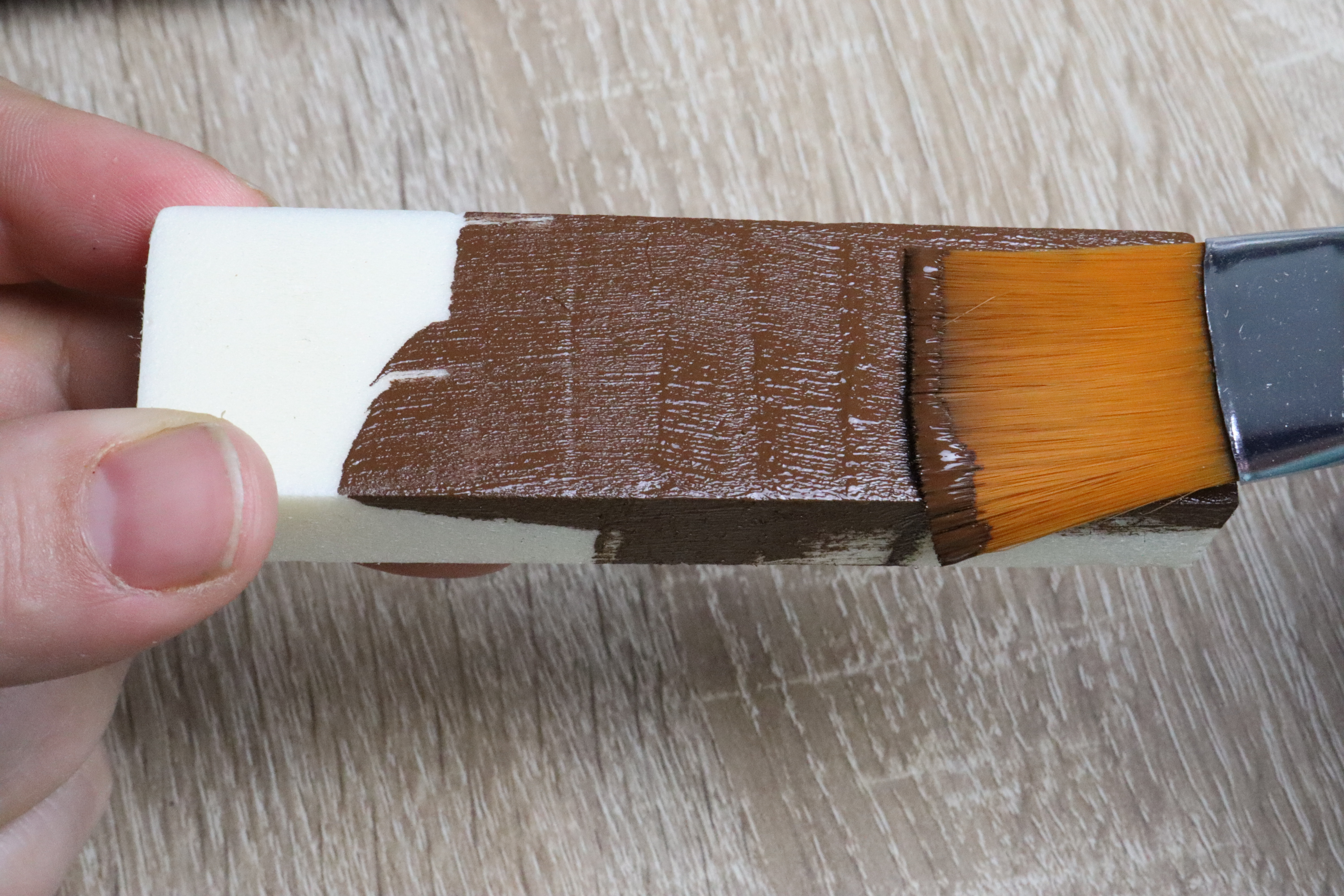 Malt euren Styrodurblock mit brauner Farbe an und gut trocknen lassen.
